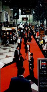 Day 4) Up and at'em at 5:45am. The day turns out to be rather gloomy with rain forecasted. By now, my commuting routine is getting fine tuned. I got to the train station in time to leisurely buy my round trip ticket, coffee and bagel and have 1 minute to hang out on the train platform watching all the other commuters who had equally well tuned commuting skills. Getting to Javits, I go directly to the special events hall to hear the keynote which will start in about 10 minutes. The ambiance is much more subdued. The usual MecklerMedia add stuff on the now more mundane 5 screens rolls on unnoticed. (Its amazing the capacity of the brain to adapt to new levels of sensory filtering.) The speaker was the Chairman/CEO of AT&T, C. Michael Armstrong. What he had to say was rather boring compared to the previous two speakers. He had no gizmo to show off, or web pages to surf too. He basically announced one thing, the intent of AT&T to take over the internet as we know it. Fair enough. He boasted the recent $48e9 acquisition of TCI. He waxed about the quality and quantity of future AT&T cable modem services. In all, he came across as the most fine tuned image projecting CEO that I've met. (The only other CEO being Larry Ellison.) Still, I was rather amazed at the skill of this guy to project the image of Stability, Strength, Leadership. By the end of his speech, I wanted him to my grandfather. (Not for the money mind you.) I recently met NY's senator from Long Island, Al D'Amato. Al is on the opposite end of the spectrum to the CEO of AT&T. When I met Al, the bit which struck me the most was his total arrogance at the people around him and at the same time his attempt to try and look caring. He would crack a forced smile when meeting the audience he was going to speak to. When the cameras were on him, that forced smile would pop back into his mouth, and all the while, we would have this strange glare in his eye, trying to asses every one he shook hands with. Needless to say, he blew me off when I shook his hand. (No forced smile for me.) But he did have lots of smiles for my wife who was also in the hand shaking line. (And a kiss on her cheek to boot!) In contrast, was AT&T's CEO. This man had depth. Being around him gave you a sense of solemn. He was a family man. He set the stage for his speech by telling a joke involving his granddaughter. After he established himself as a caring family man, with his joke, he plunged ahead with talk of how AT&T will be in everyones home delivering those internet services to you via TV. I guess the big difference between Al and this CEO is the amount of money they truly control. Al controls his campaign funds. He really has little control over the US government budget. In contrast, the CEO controls BILLIONS and is payed mucho more for it than Al gets for voting in the US senate. So, the law of capitalism dictates. You get the Al D'Amatos to run the country and the C. Michael Armstrong's to rule the world!