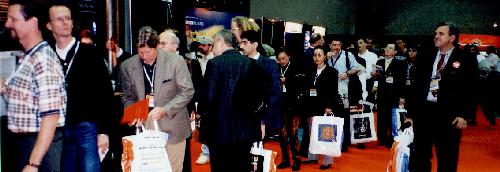 After being let down by the Netscape keynote, I rushed back up to the RedHat booth to see how the CD handout was going. It was going well. There was a line of about 20 to 30 people long waiting to get a RedHat CD. I took the opportunity to take some pictures of the line of Linux users to be. With that, I wished the RedHat team good luck in there endeavors and took off to my last session, "Migrating to IP version 6." This session was given by two IBM consultants out of North Carolina. My first tag team seminar with that same tele-evangelist delivery. IPv6, Amen!
