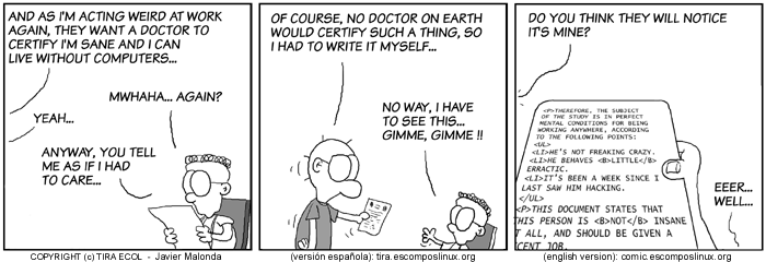 These cartoons are copyright Javier Malonda. They may be copied, link ed or distributed by any means. However, you may not distribute modifications. If you link to a cartoon, please notify Javier, who would appreciate hearing from you.