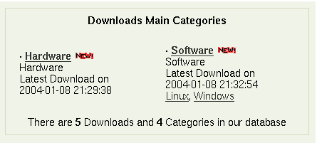 Downloads: Main categories with last download date.